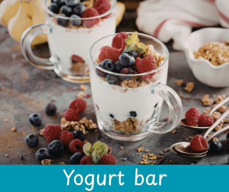 You can make a yogurt bar with whatever you think your guests will enjoy. Have plain and flavored yogurt in large bowls and then a variety of toppings: berries, other chopped fruit, granola, nuts, etc.