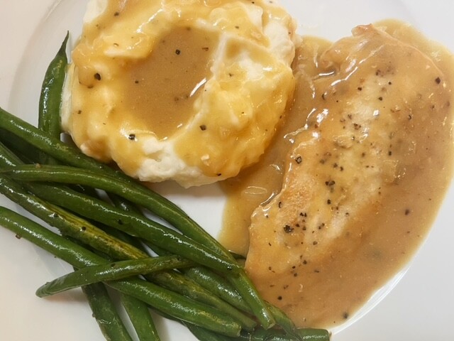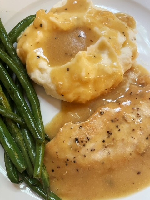 Tip: This needs to be served with mashed potatoes and a green veggie (in my opinion)!