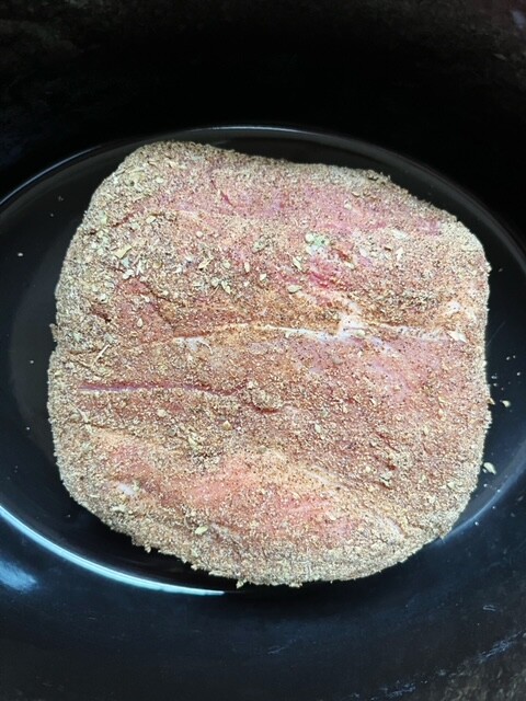 - Remove from the oven and spoon a little bit of the juice from the slow cooker over the meat.