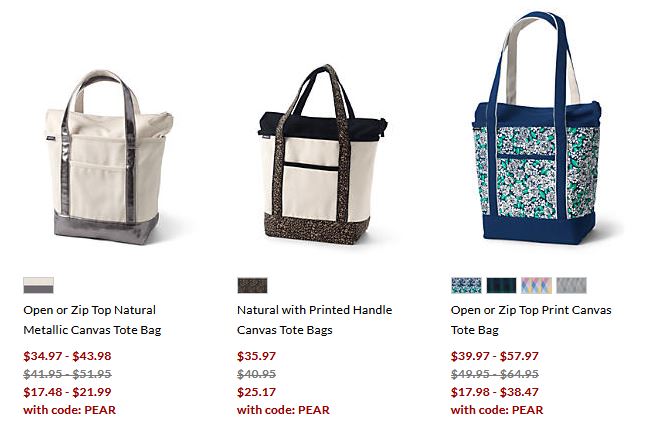 Lands’ End tote bags are my favorite! They hold up great, come in lots of sizes, and are a great deal right now. You can get them for as low as $17.48 with the code PEAR.