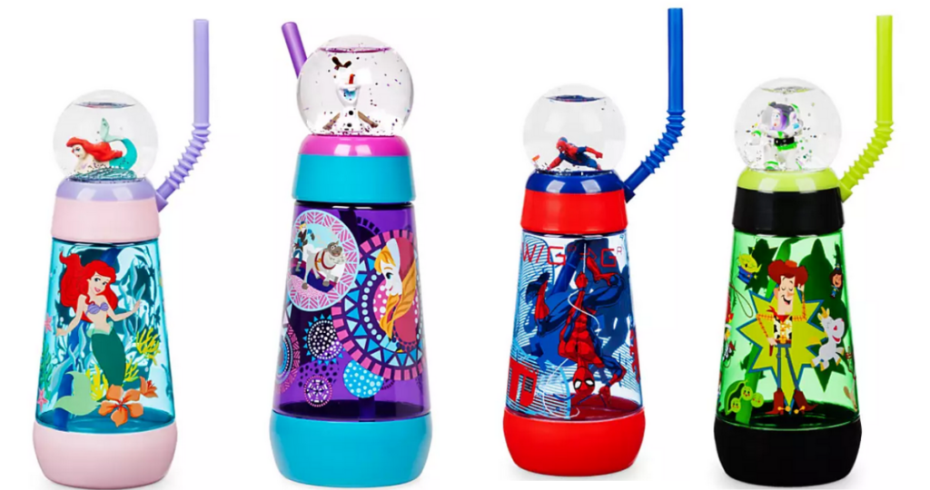 These cool cups have attached flexible straws and cute Snowglobes featuring some favorite Disney characters!
