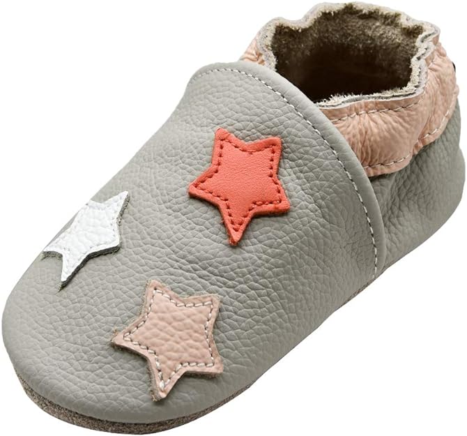 Babies learn to walk best without hard soled shoes, but these soft soled ones are great for protecting little feet when they are outside.