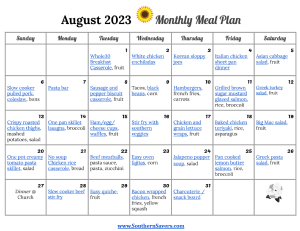 Southern Savers FREE August 2023 Monthly Meal Plan