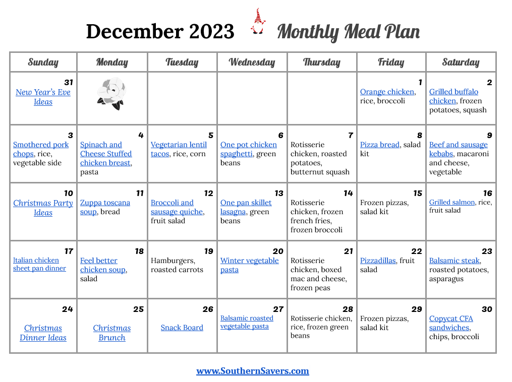 Southern Savers FREE December 2023 Monthly Meal Plan