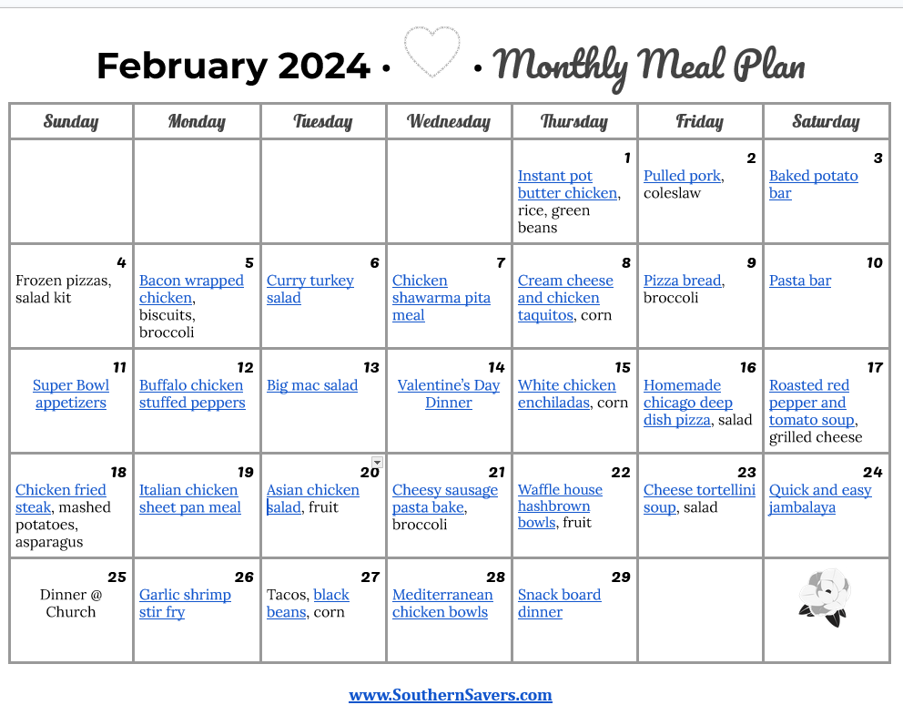 Home > Frugal Living > Southern Savers FREE February 2024 Monthly Meal Plan