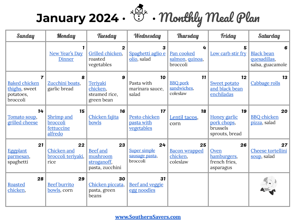 Home > Frugal Living > Southern Savers FREE January 2024 Monthly Meal Plan