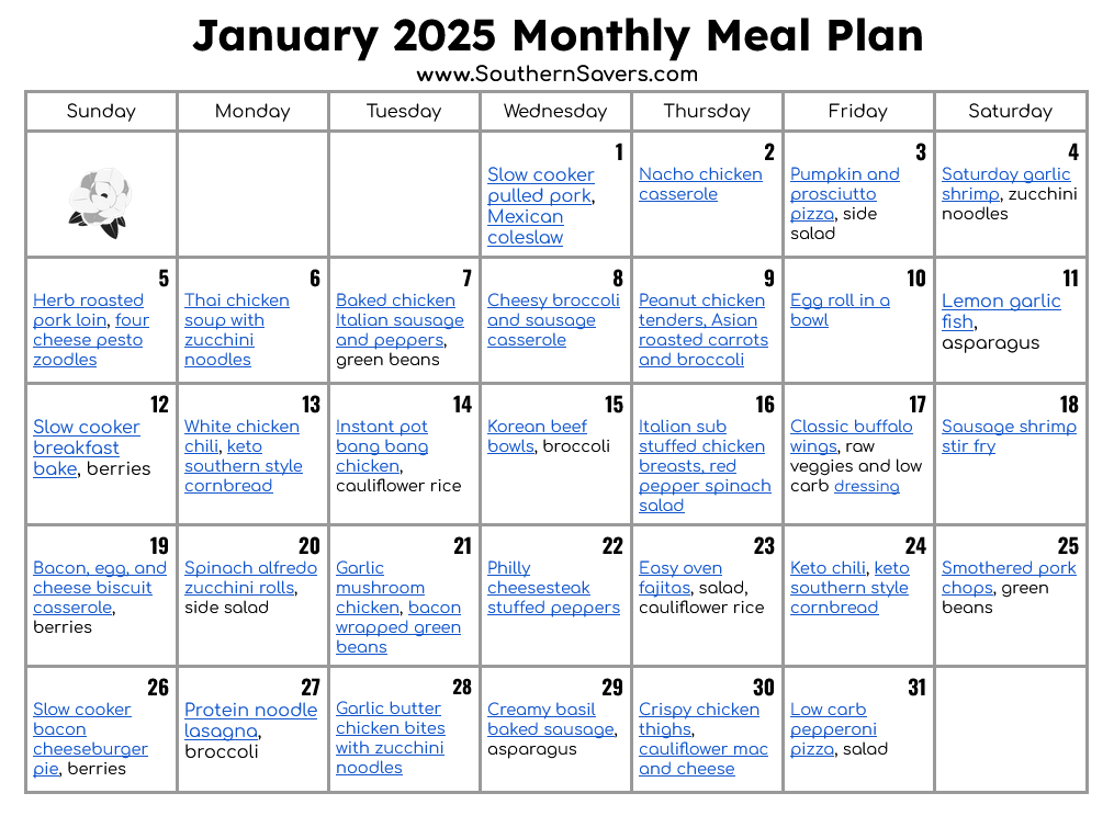 Southern Savers FREE January 2025 Monthly Meal Plan