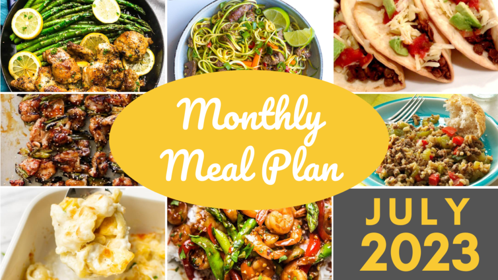 Can you believe the year is already halfway over? It feels like 2023 is flying by. But we’re all still here, and we all still need ideas for what to eat. I’m not trying to reinvent the wheel, but I do want to give you fresh inspiration each month if I can. So here’s this month’s post—your FREE July 2023 monthly meal plan.