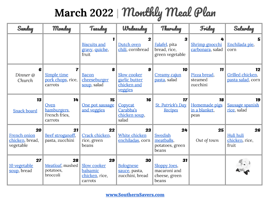 Home > Frugal Living > Southern Savers FREE March 2022 Monthly Meal Plan