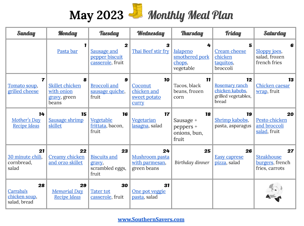 Home > Frugal Living > Southern Savers FREE May 2023 Monthly Meal Plan