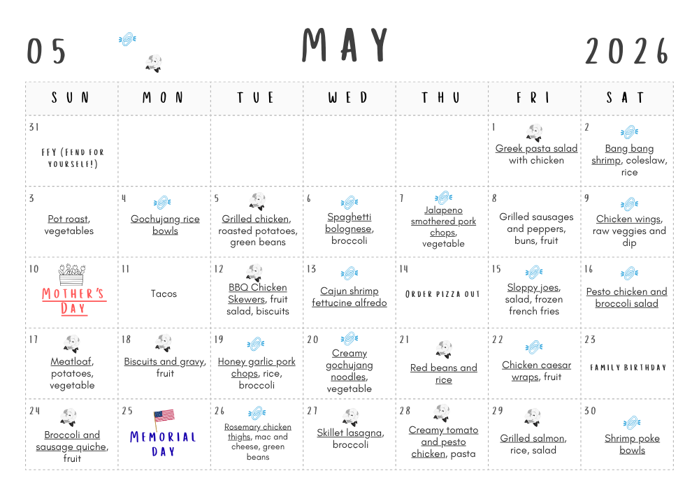 - Southern Savers FREE May 2026 Monthly Meal Plan