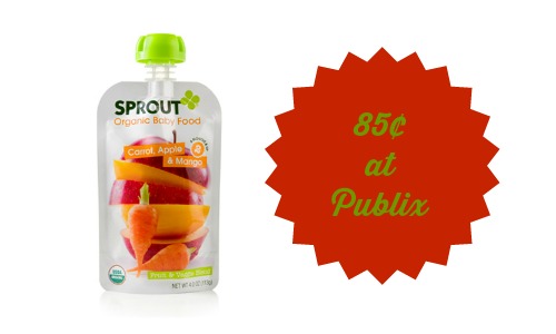 If you’re looking for a healthy baby food for your baby, here’s a new Sprout coupon that you can use at Publix to get Organic Baby Food Pouches. Buy five of the Sprout pouches for only 85¢ each when you use the coupon!