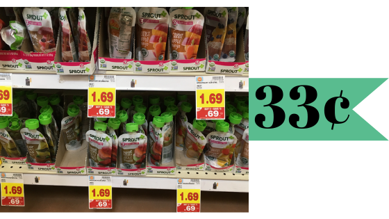 Now is a great time to stock up on baby food during the Kroger Mega Event. Use a coupon below to get Sprout Organic pouches for just 33¢ each!