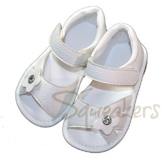 I recently received a pair of Squeakers for my 4-year-old to try out and to let you guys know about.  It seems like she never has any shoes for church when we go to get ready Sunday mornings, so I knew i wanted to find some nice looking shoes (not sneakers).  They had plenty of really cute and stylish shoes to choose from – it was hard to just pick one shoe.  I found the Ava White Sandal, and it was just what we needed!
