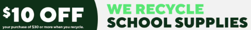 Plus, Staples will currently give you a coupon for $10 off a $30 purchase when you recycle school supplies! Eligible items include backpacks, pencil pouches, glue sticks, empty glue bottles, binders, and tech items.
