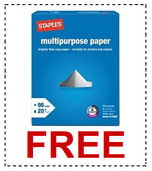 The deal for FREE Staples Paper is back! In fact, print this coupon for a Staples Easy Rebate and a get 100% back on a 5- Ream case or 2500 sheets of paper! You should be set for a while and nicely stocked for printing coupons.