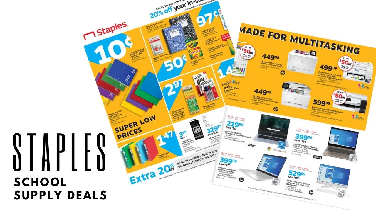 Grab all your school supplies with the new Staples Ad starting today. Find deals starting at 10¢. We have about two more weeks of deals so don’t wait too long to get what you need!