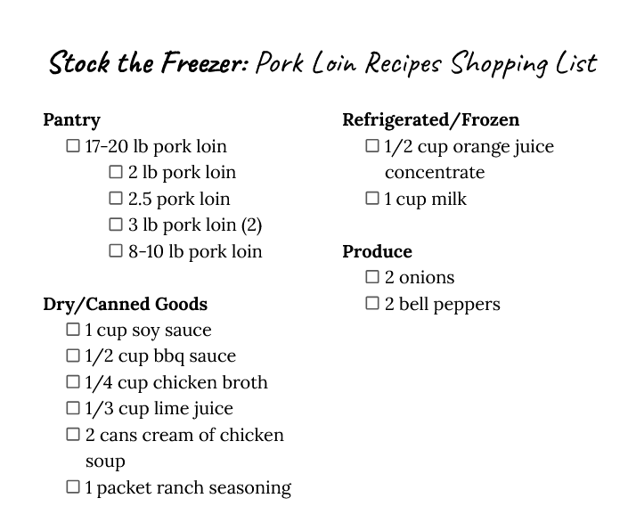 Download the free Freezer Pork Loin Recipes shopping list!
