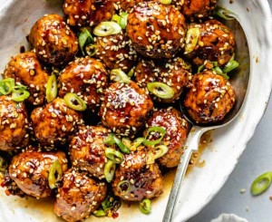 If you have these meatballs in the freezer, all you need to do is make some instant rice and heat up some frozen vegetables for a full meal in a really short amount of time.
