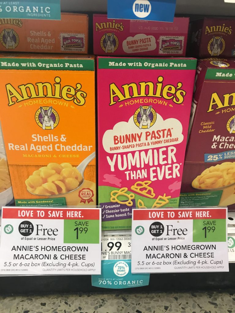 Annie’s Homegrown Macaroni & Cheese, 4.02-11 oz, starting at, at $1.99 (99¢)