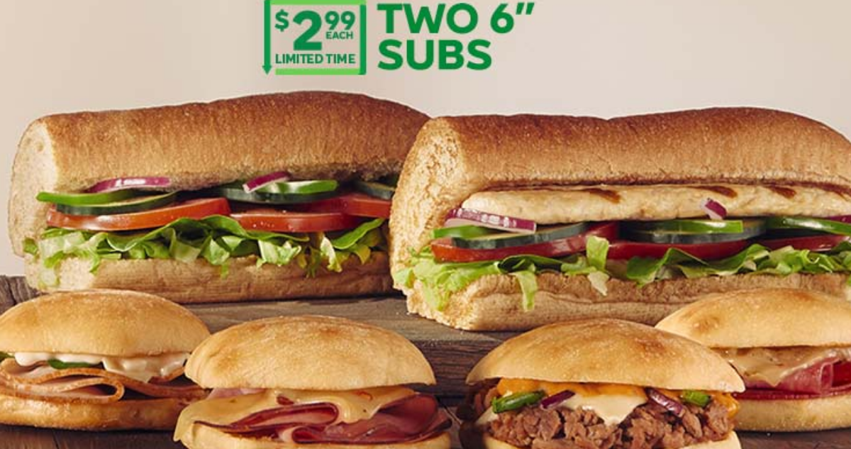 For a limited time, you can get Oven Roasted Chicken or Veggie Delight 6 inch for $2.99 at Subway. You can also get sliders starting at $1.89.