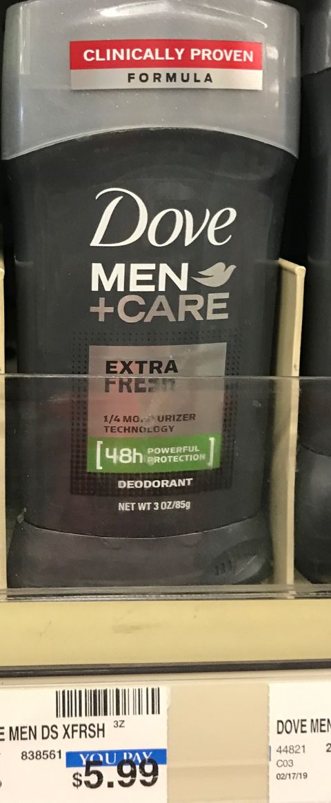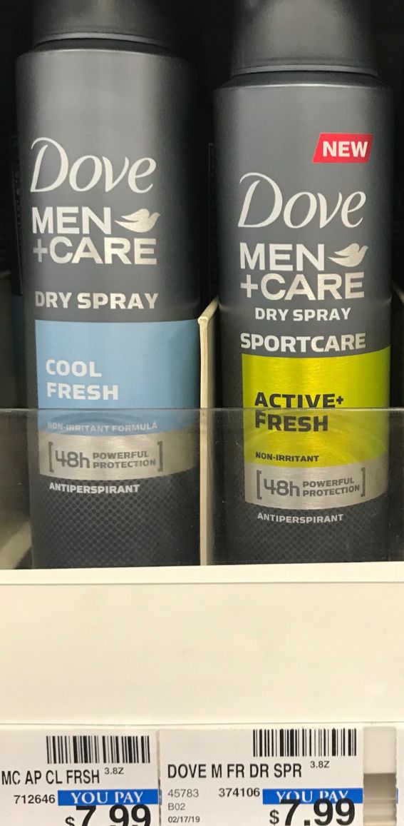 Dove Men+Care Clean Comfort Dry Spray 3.8 oz – Deodorant that goes on instantly dry and still offers 48 hour sweat and odor protection. It’s clinically proven to not irritate skin, but to help protect against irritation.