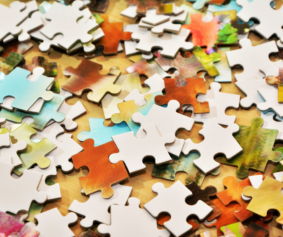 Choose a puzzle with a lot of pieces (1,000+) and work on it as you’re able to.