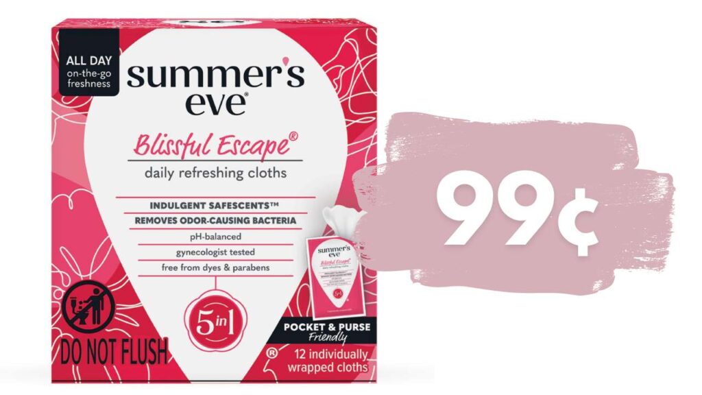 If you’re headed to Target this weekend, be sure to grab a box of Summer’s Eve Feminine Wipes. After an insert coupon you’ll get a 12-pack for just 99¢.