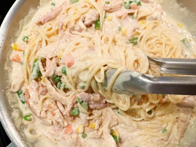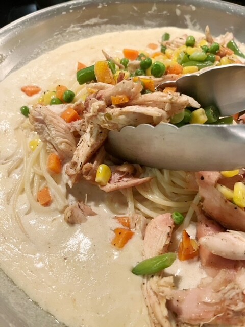 Super Easy Chicken & Veggie Alfredo Pasta