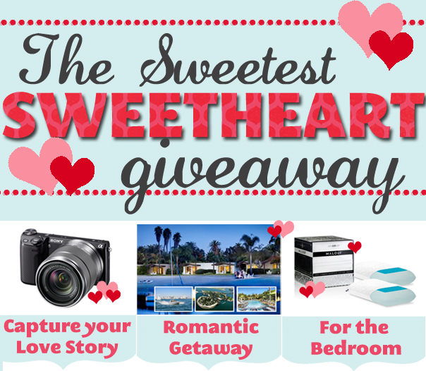 With Valentine’s Day just around the corner, what better way to kick off the ‘month of love’ than with an awesome giveaway!?!  I’m talking prizes, like a romantic 3 day vacation in San Diego, fancy-schmancy luxury bedding, and one of the coolest cameras, ever.  That’s nearly $2000 bucks in prizes.