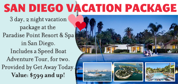 Get Away Today and Paradise Point Resort are offering one winner the ultimate romantic get-away for two in the Lania Garden Room at their Four Diamond island resort in San Diego. On top of that, enjoy being the captain of a speedboat on an adventure tour of San Diego Harbor! Vacation includes tax, parking, and resort fees. Package is subject to availability and reservations must be made in advance. Package must be used by October 30, 2013. Transportation to and from destination is not included.