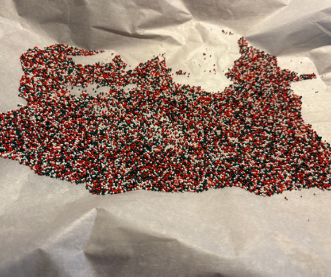 Dump out your sprinkles in a rimmed baking sheet on parchment paper.