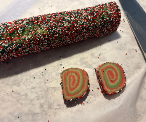 Then just roll the cylinder in the sprinkles. Cut the dough into 1/3rd inch slices.