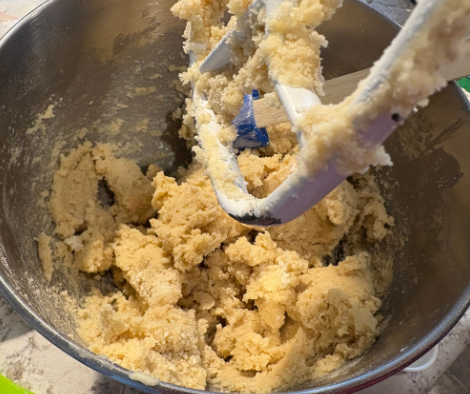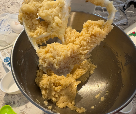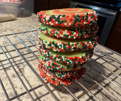 Years ago I used to make a certain kind of Christmas cookie made of sugar cookie dough that was divided into thirds before using food coloring to make the final cookie have three colors: white, red, and green. I wanted to try to make those again this year but couldn’t find my old recipe. So I decided to just use a sugar cookie dough recipe I’ve used before and then add a special touch: sprinkles.