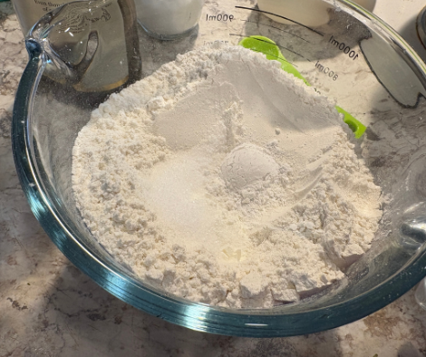 - Mix the flour, cornstarch, baking powder, and salt in a separate bowl.