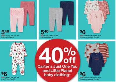 40% off Carters and Little Planet Baby Clothes