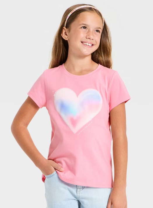 Girls’ Short Sleeve ‘Airbrush Heart’ Graphic T-Shirt $6
