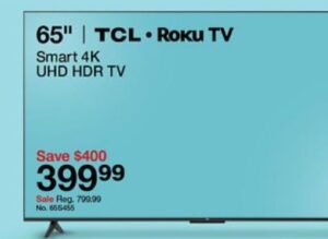 TCL 65″ Smart 4K UHD TV – $399.99 (reg. $799.99)