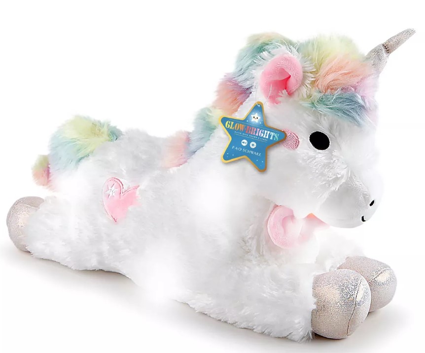 (1) FAO Schwarz Glow Brights Toy Plush LED with Sound White Unicorn 15″ Stuffed Animal – $14.99 (reg. $20)