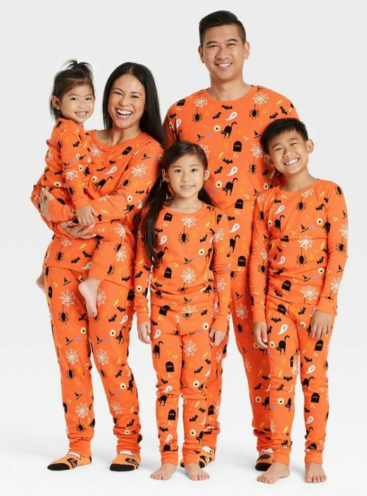 There are several styles to choose from – dinosaurs, skeletons, pumpkins, and more spooky prints. Don’t forget about your pets… they have a set for them too!