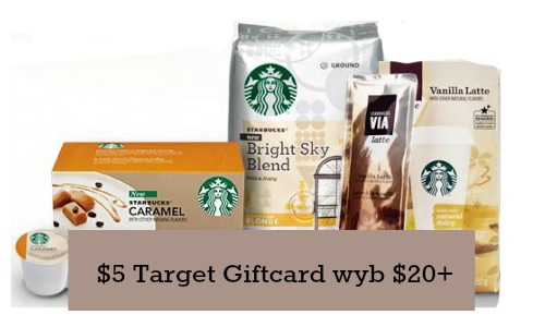 -$5 Target giftcard wyb $20+ in Starbucks purchase, Target mobile coupon- text STARBUCKS to 827438 (exp. 6/13)