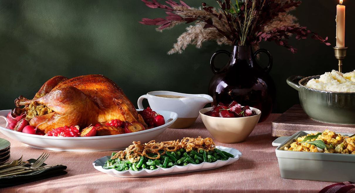 The deal comes with a 10 lb. turkey, 5 lb. potatoes, frozen corn, soft french bread, cranberry sauce, stuffing, and gravy.