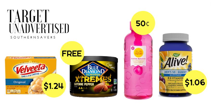 Here’s a list of the Target unadvertised deals I found at my store this week. Get bubble solution for 50¢, FREE Blue Diamond almonds, and more.