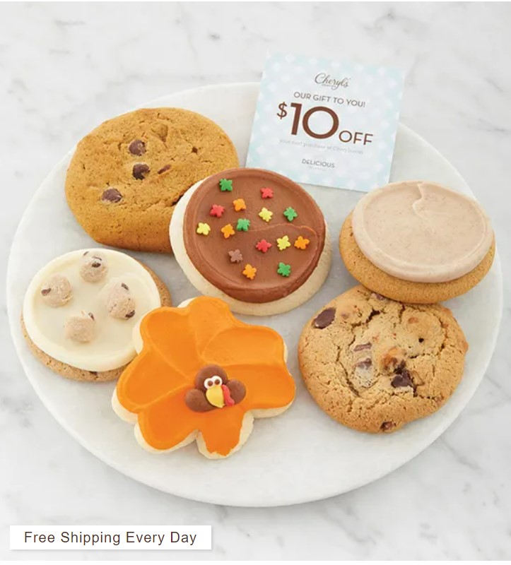 The sampler package is a great way to taste test Thanksgiving favorites along with Cheryl’s NEW Cookie Dough cookies!