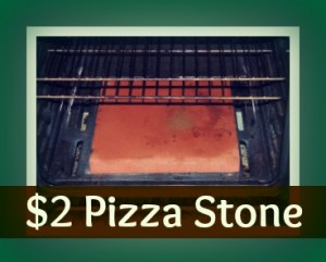All you need to get is a cheap, unglazed 12″ brick tile from the garden section of your local home improvement store. Make sure it is unglazed to avoid chemicals. It is also a good idea to thoroughly wash it and pre-bake it before you use it. You can also cover it with parchment paper or aluminum foil if you are concerned.