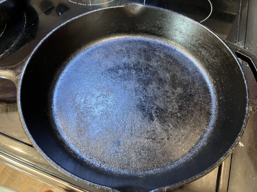 - Heat a non-stick or cast iron skillet on low.