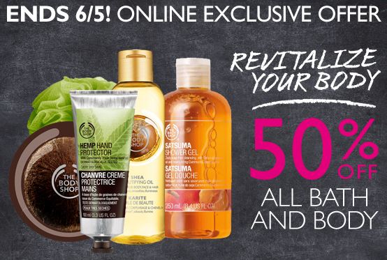 The Body Shop has a great sale that ends TODAY, on their body scrubs, shower gels, and body butters for 50% off!