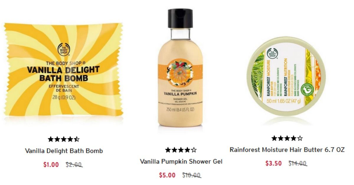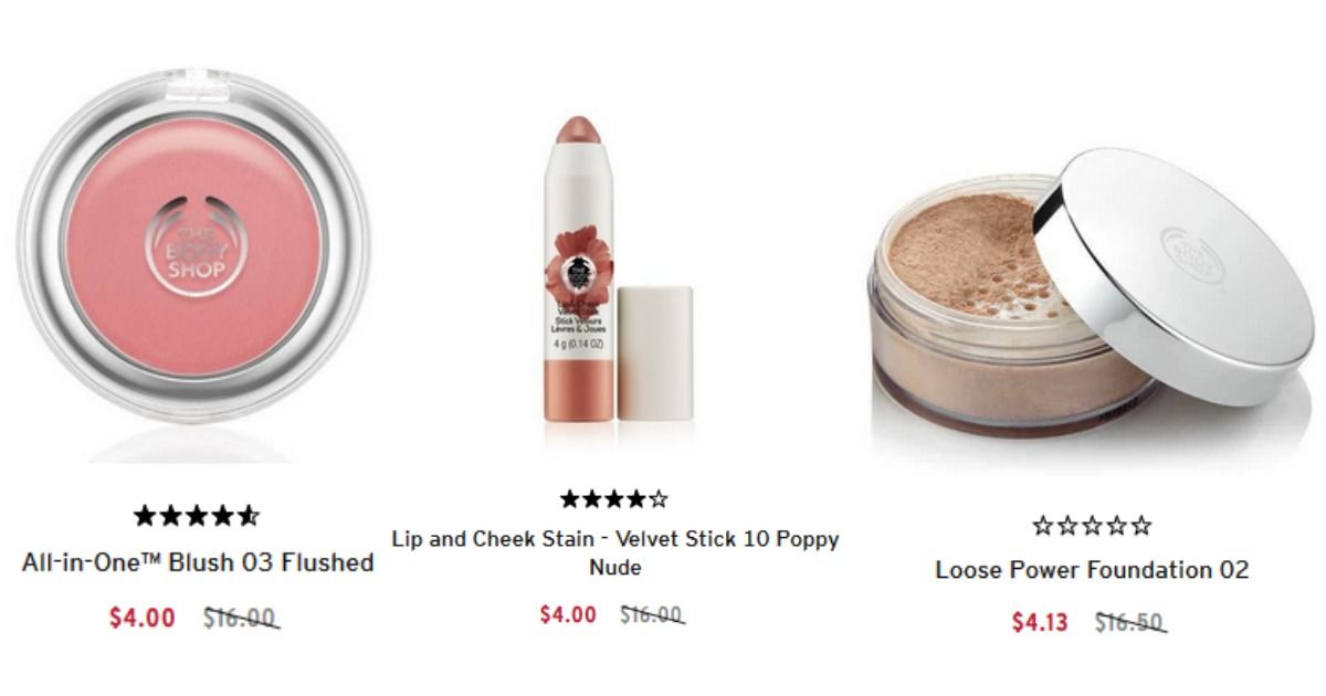 Right now The Body Shop is offering FREE shipping on any purchase! They also have lots of items at up to 75% off, like makeup tools, blush, and more.