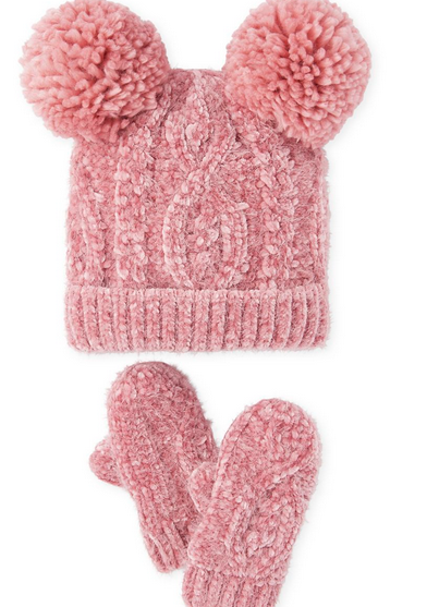 Pom Pom Beanie And Mittens Set