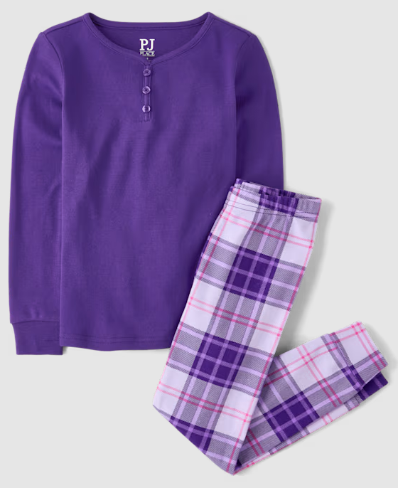 Girls Plaid Snug Fit Cotton Henley Pajamas – purple – $11.82 (reg. $36.95)